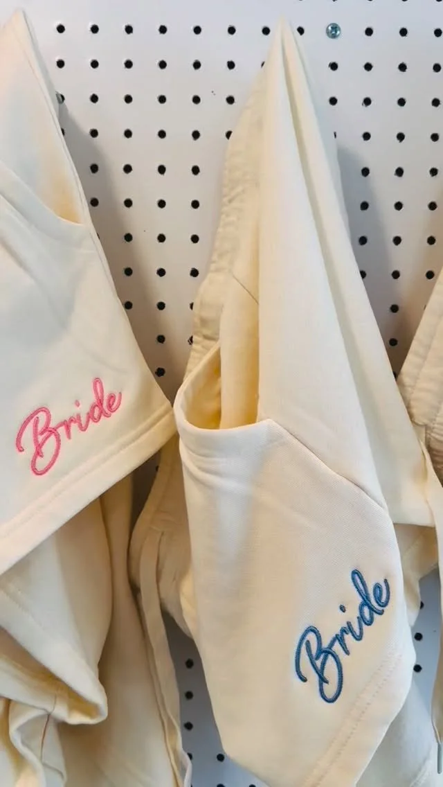 Custom Embroidery for companies, schools, sports, weddings, spirit wear etc.