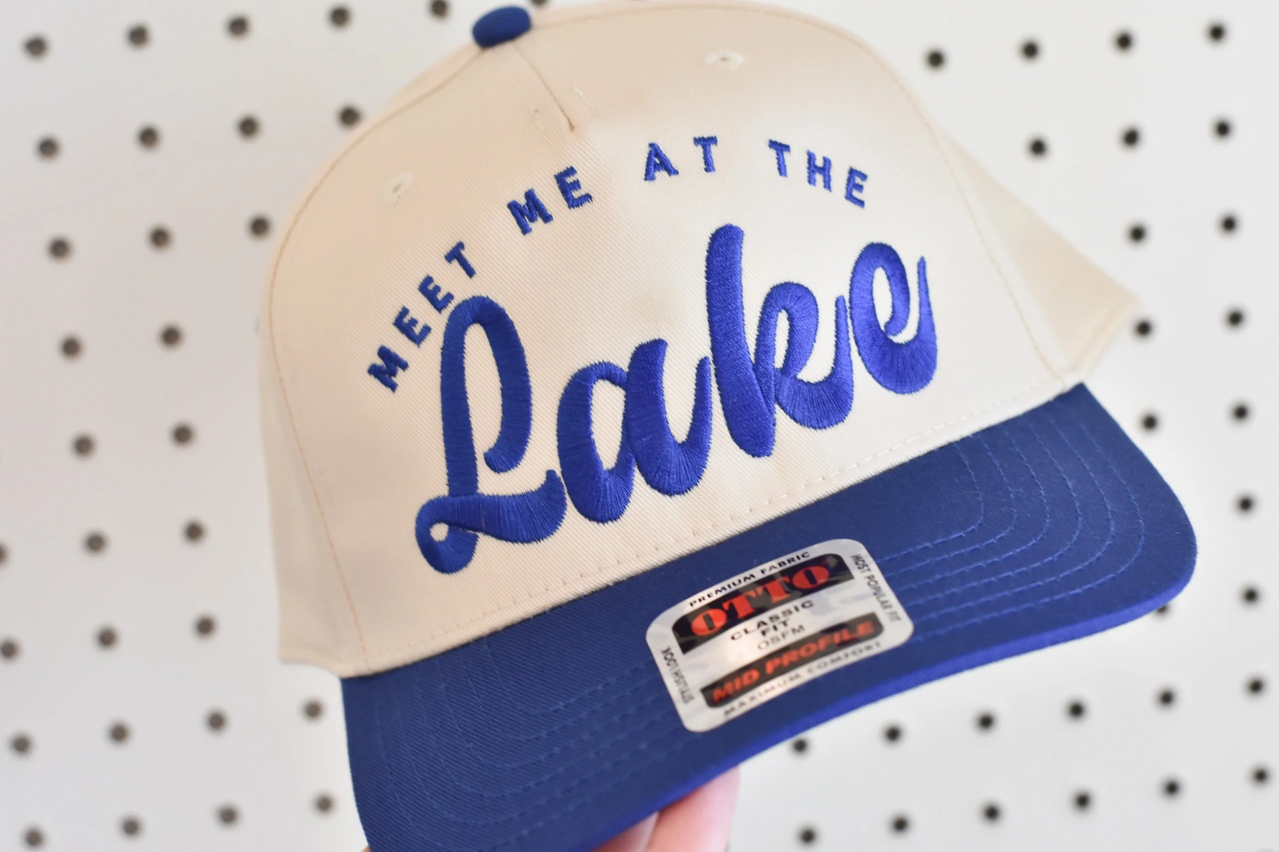 Two tone trucker hat featured in Royal Blue with Meet Me At The Lake embroidered across front. Perfect for any lake day. Personalize with the name of your favorite lake on the back.