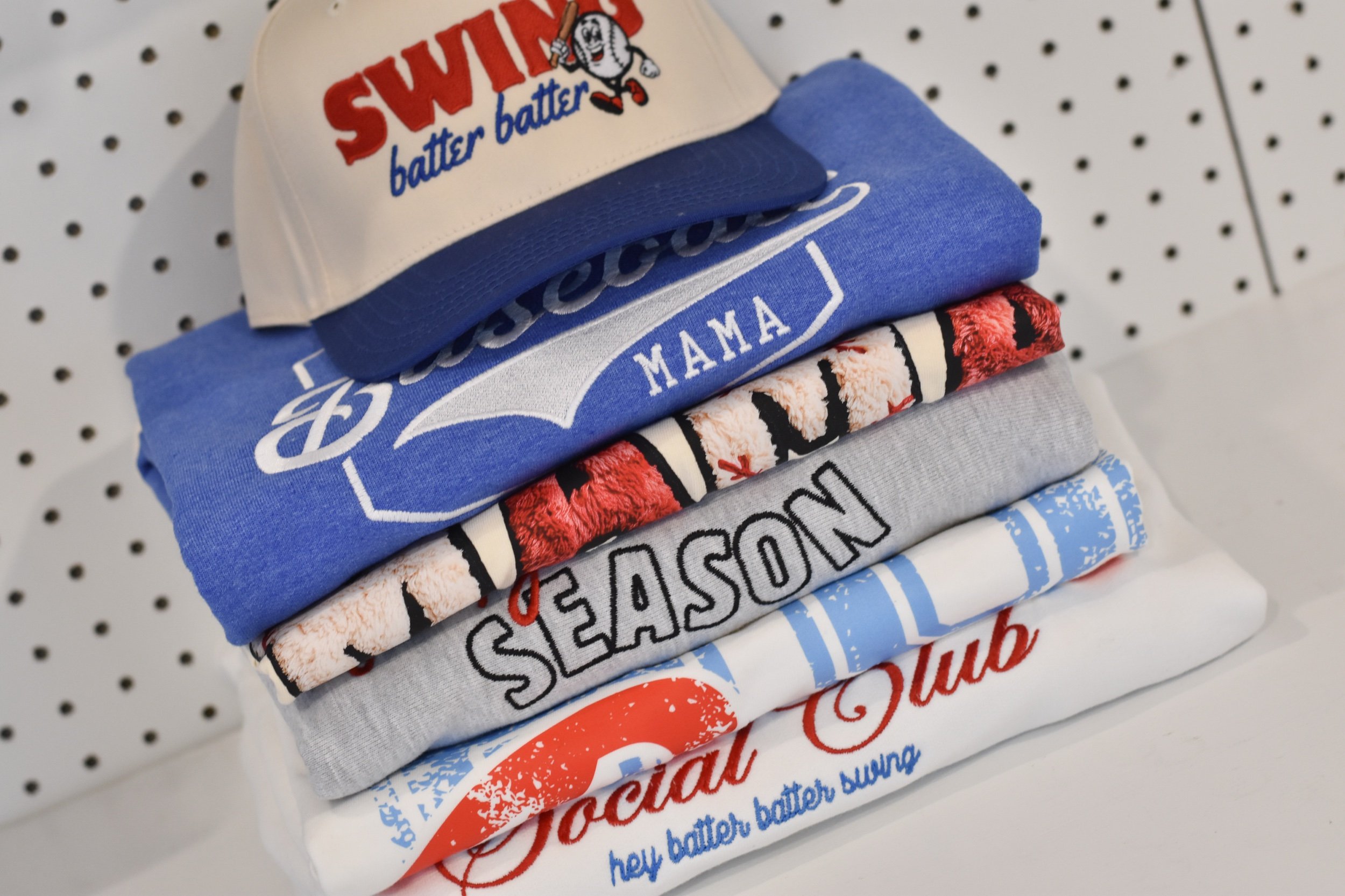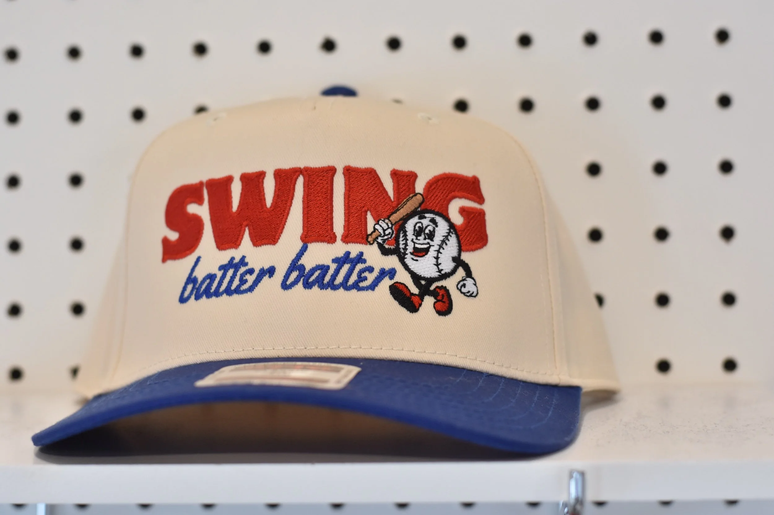 Retro Trucker style hat with, “Swing Batter Batter” embroidered across front. Want to customize further with side details or back details. Shoot us a message and we can create something custom for you!