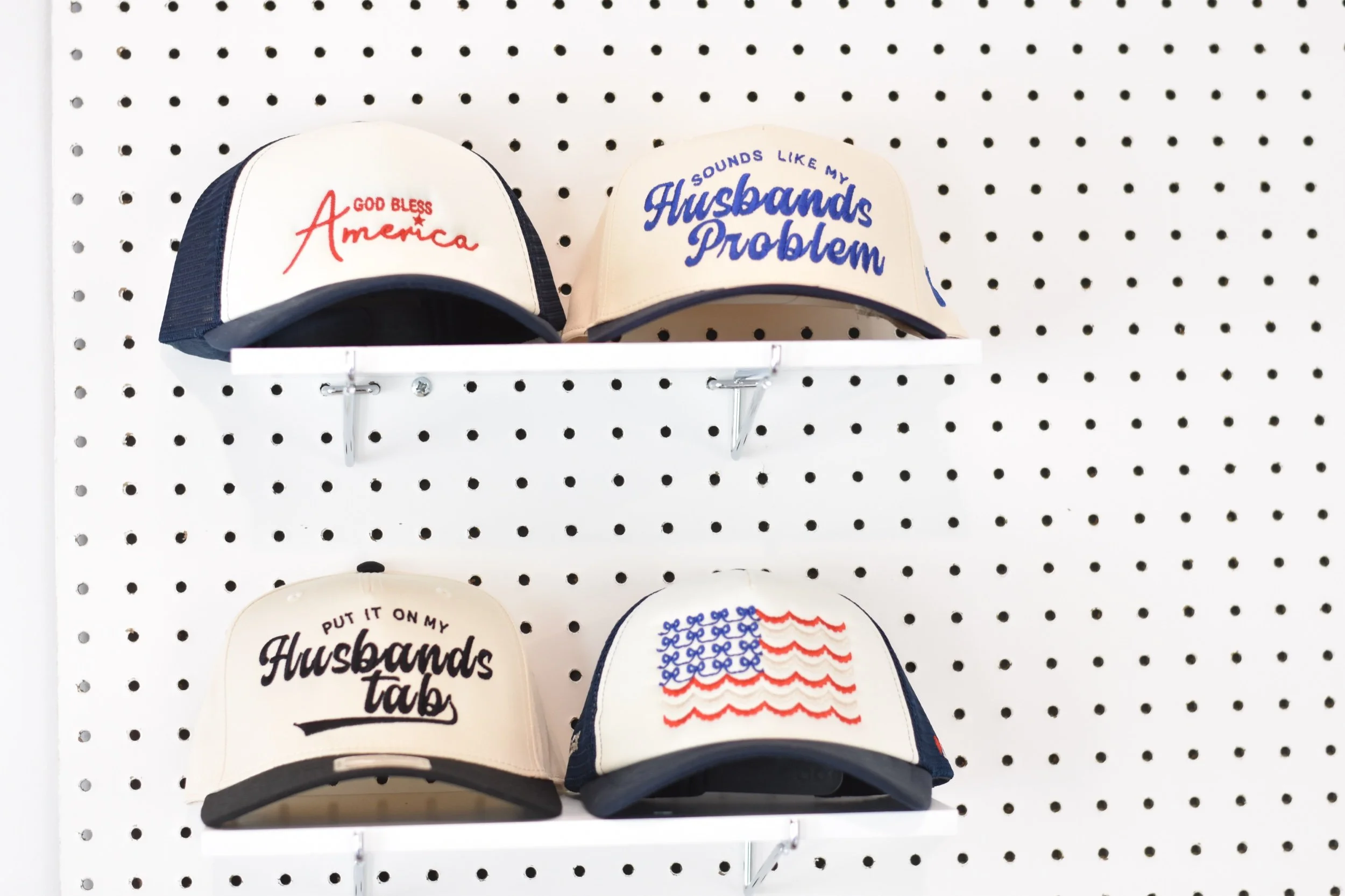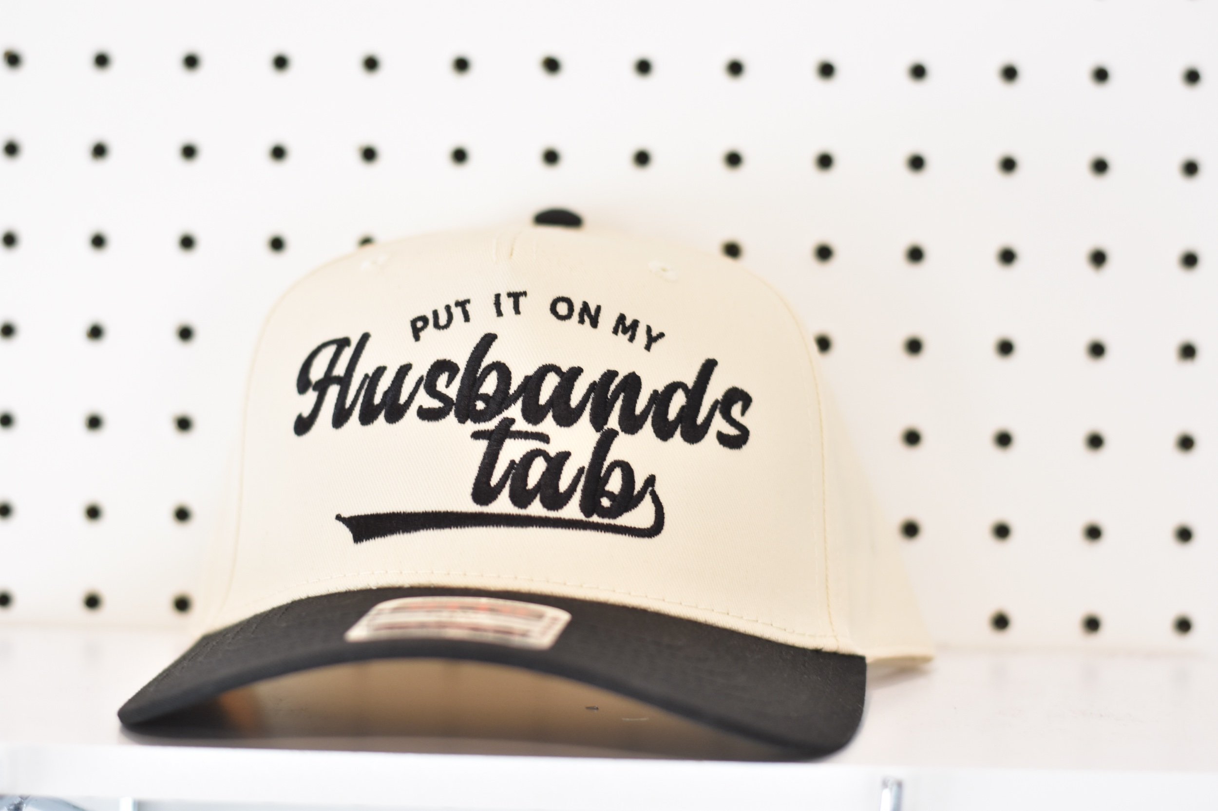 Store › Put it on my Husbands Tab Trucker Hat Put it on my Husbands Tab Trucker Hat $28.00 Trucker style hat with “Put it on my Husbands Tab” across the front. Trucker style hat with “Put it on my Husbands Tab” across the front. Color: Red Black Blue Green Add To Cart Added!